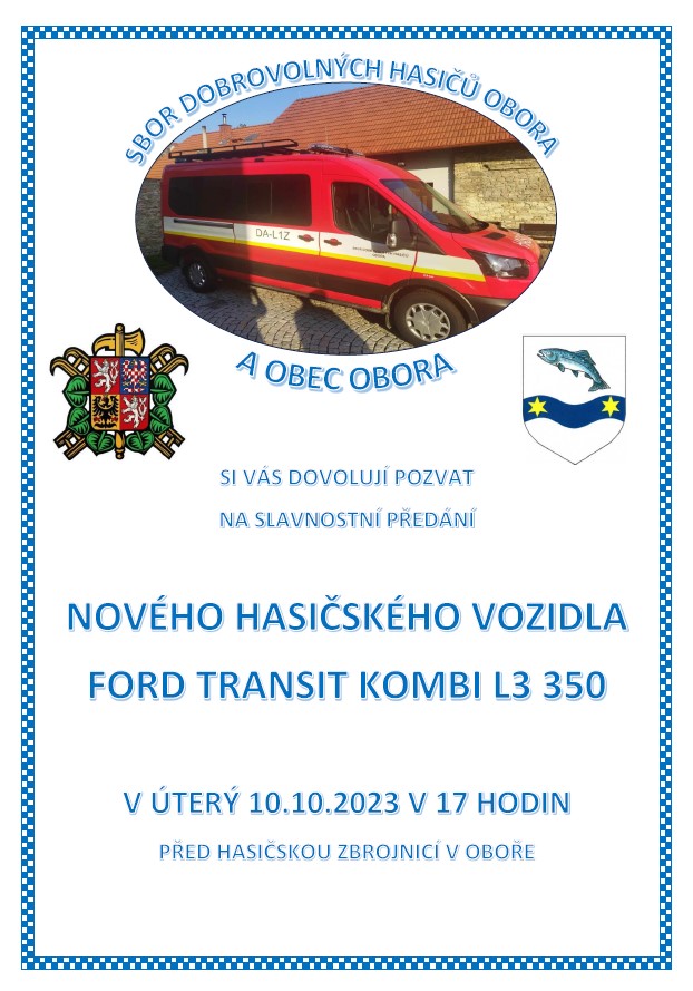 Slavnostní předání nového dopravního automobilu jednotce SDH Obora dne 10.10.2023